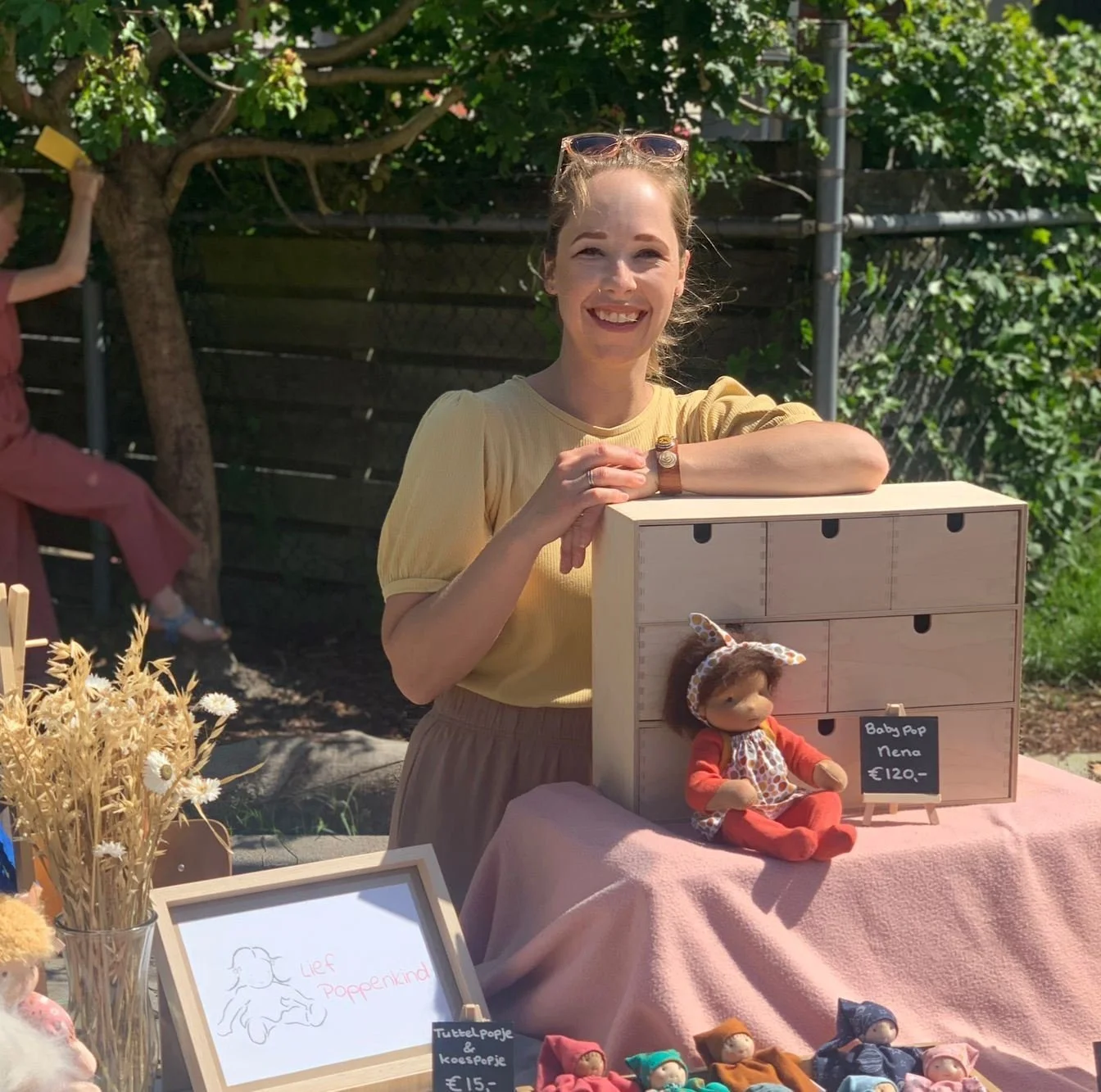 In een klein, licht atelier waar de geur van wol en lavendel zachtjes door de lucht zweeft, werkt Griselda met haar handen en hart. Ze is de ziel achter Het Wollen Sprookje, een plek waar magie en ambacht samenkomen. Met geduldige vingers en een liefdevolle blik maakt ze zonnekindpoppen. Zachte, handgemaakte poppen van natuurlijke materialen, elk met een eigen karakter en uitstraling. Ze werkt met wol, katoen en zijde, met kleuren die de seizoenen weerspiegelen. Geen enkele pop is hetzelfde.